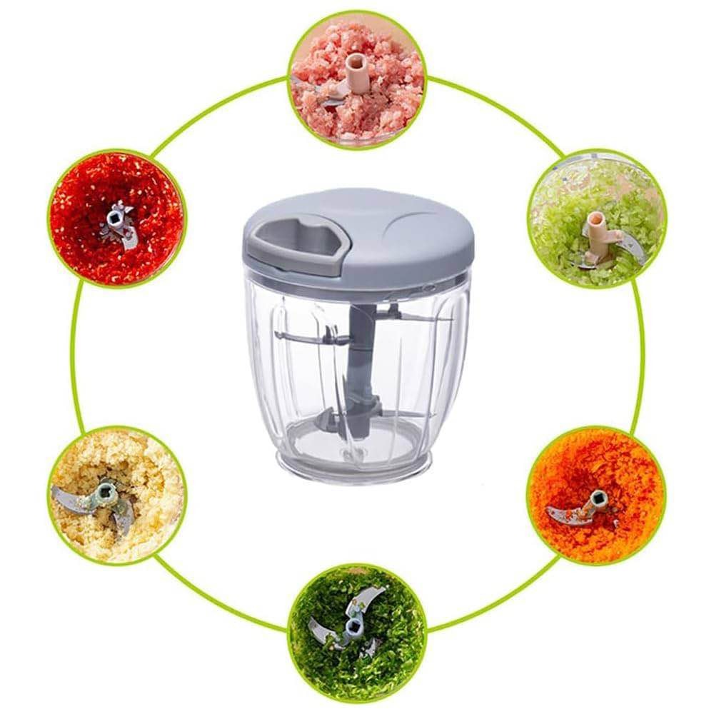 roduct details of Manual Food Chopper – Speedy Hand Chopper & Cutter | Mini Food Processor with 5 Stainless Steel Blades (900ML) & 3 Blades (500ML)